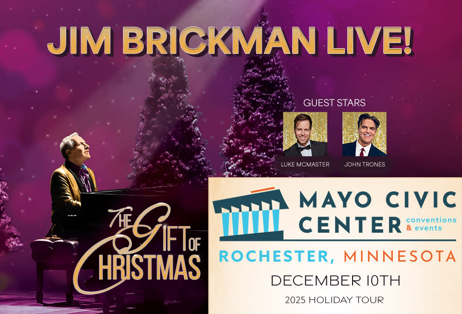 Loading Map… Presentation Hall at Mayo Civic Center30 Civic Center Drive SE - RochesterEvents 44.022483 -92.458878 Date/Time Date(s) - Dec 10, 2025 (Wed)7:30 pm Location Presentation Hall at Mayo Civic Center Categories Jim Brickman's The Gift of Christmas 2025 USA Tour May 24Massey HallToronto, ONBuy TicketsMay 28Electric FactoryPhiladelphia, PABuy TicketsJune 12Manhattan CenterNew York, NYBuy TicketsJune 25BB&T PavilionCamden, NJBuy TicketsJuly 02Aragon BallroomChicago, ILBuy TicketsJuly 08WaMu TheaterSeattle, WABuy TicketsJuly 15Fox TheaterOakland, CABuy TicketsJuly 21Shrine Expo HallLos AngelesBuy Tickets